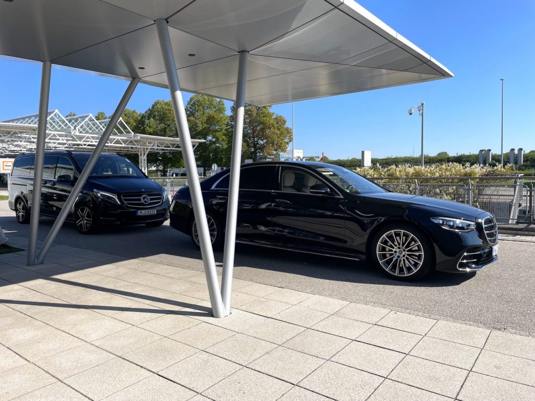 Your chauffeur awaits with a name sign at the exit of the customs area. Optional welcome with a cappuccino or a fresh pretzel. Luggage handling and direct transfer to the vehicle. Punctual transit via optimized routing.